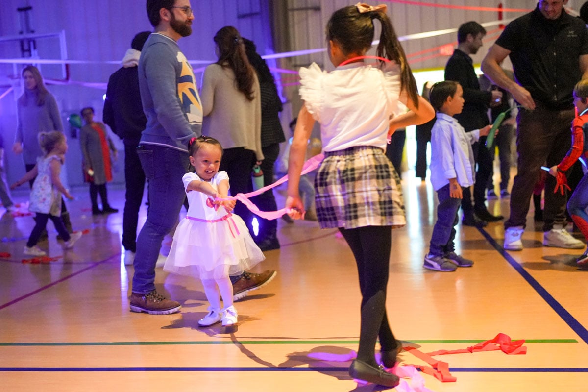 Riverbend students and families light up the night at the annual all-school dance party in the Riverbend gym! From toddlers through middle schoolers, students of all ages love this festive, high energy evening for the whole family.