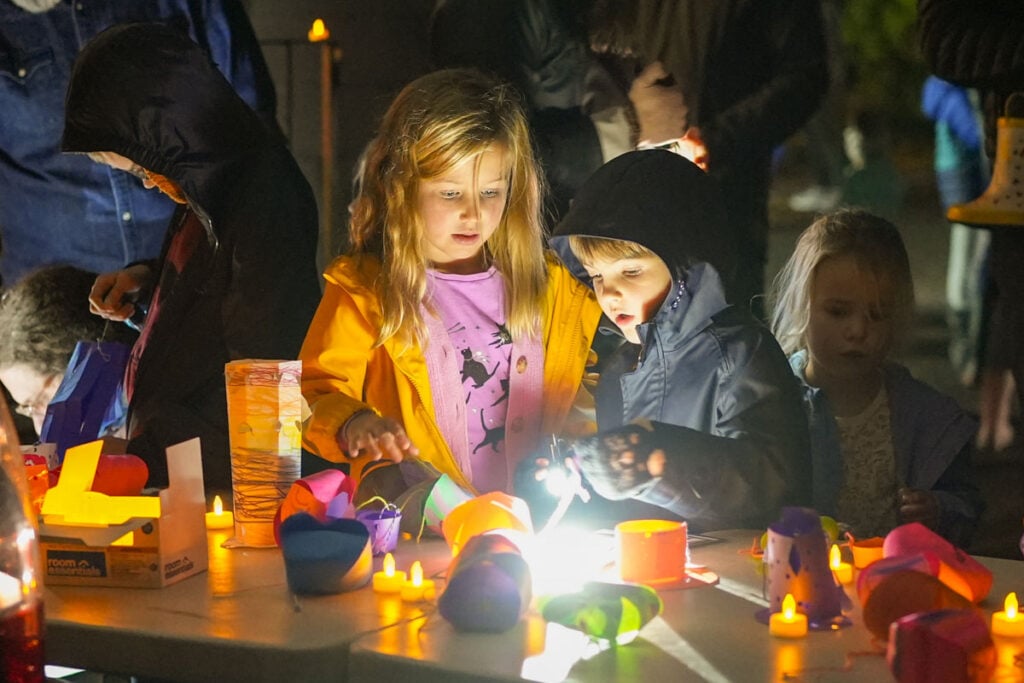 The evening features a music-filled lantern procession around the grounds of the Magullion Center, our satellite property on Pleasant Street. Students make lanterns in art class before the event, and they fill the lanterns with tea lights for the procession. Other highlights of the evening include a cozy campfire and storytelling.
