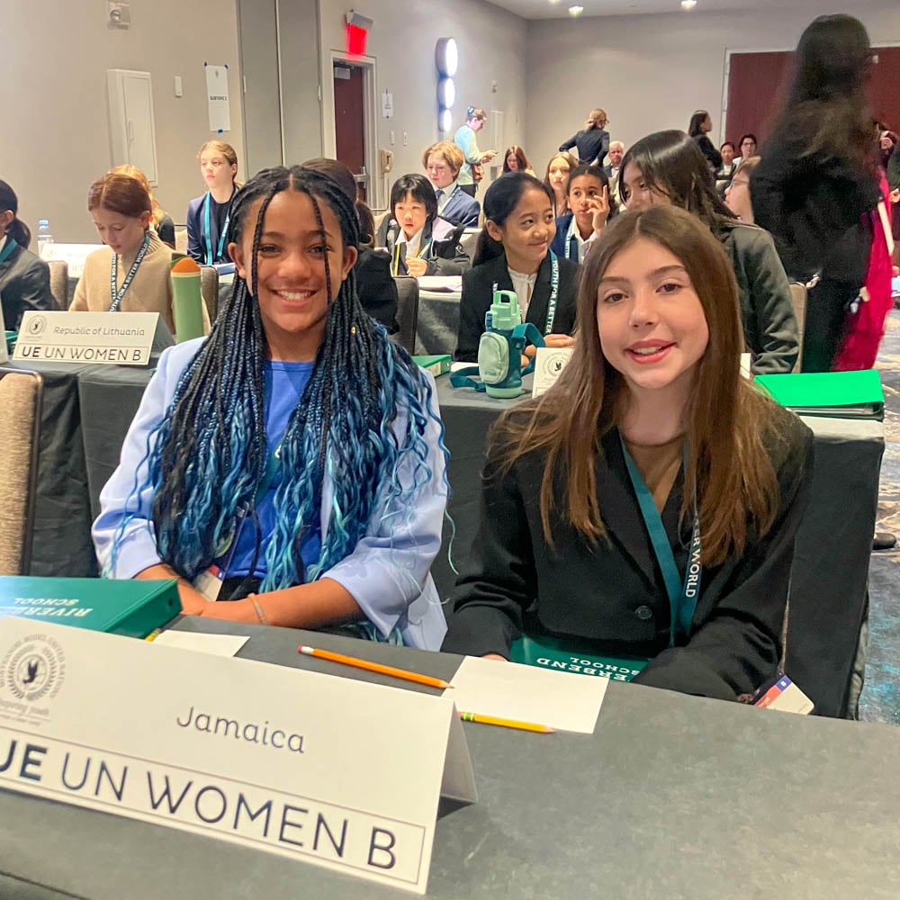 Each year, sixth graders attend the Montessori Model United Nations conference, a simulation of the UN General Assembly and its committees. As delegates, students give speeches, write draft resolutions, discuss solutions, find consensus, and learn the rules of procedure, working cooperatively to solve problems that affect countries from every part of the world.